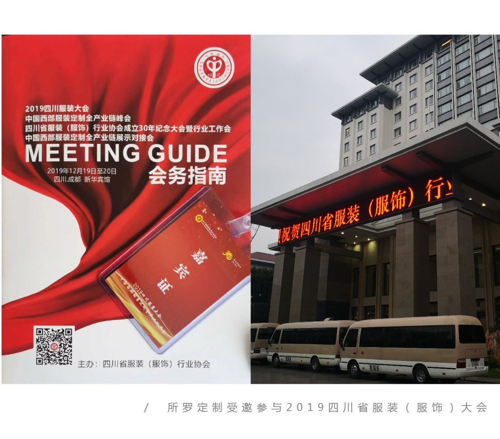 行业动态所罗定制受邀参与2019四川省服装(服饰)大会 发表评论 / 行业动态 / solo 12月19日,2019四川省服装(服饰)大会暨中国西部服装定制全产业链峰会在成都隆重举行。 此次大会由以下四大板块组成:一、中国西部服